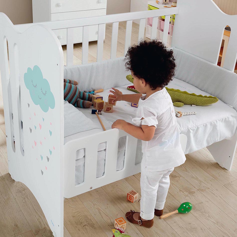 - Se aconseja poner en la altura más baja del somier de la cuna y sin ruedas.
